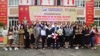 (LSVN) - Ngày 06/3/2023 vừa qua, tại Trường Trung học cơ sở Ngọc Lâm (Hà Nội) đã diễn ra buổi tuyên truyền pháp luật liên quan đến chủ đề Luật An ninh mạng, cách sử dụng mạng xã hội an toàn, văn minh. Chương trình được thực hiện bởi sự phối hợp giữa Đoàn Luật sư TP. Hà Nội và Ban Giám hiệu nhà trường.