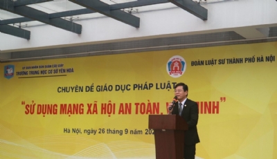 ( LSVN) - Nằm trong chuỗi các sự kiện hướng tới chào mừng kỷ niệm 77 năm Ngày Truyền thống Luật sư Việt Nam (10/10/1945 – 10/10/2022), ngày 26/9/2022 vừa qua, Đoàn Luật sư TP. Hà Nội đã tổ chức hoạt động tuyên truyền, phổ biến giáo dục pháp luật và trợ giúp pháp lý cho 1571 học sinh các khối 6,7 và 9 tại Trường THCS Yên Hòa, quận Cầu Giấy, TP. Hà Nội với chủ đề “Sử dụng mạng xã hội an toàn, văn minh”.